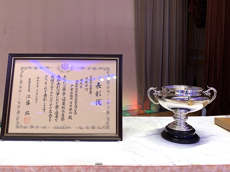 さらには、カキ剥きにかかる作業時間も大幅に短縮されるなど、収入や労働環境の改善は、若手漁業者の参加を促しました。令和元年度の農林水産祭の最高賞である天皇杯を受賞するなど、社会的にも大きく評価されました。