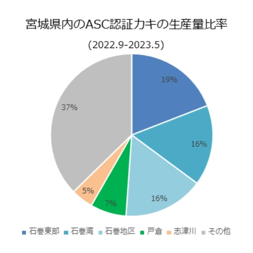 南三陸町戸倉地区でのASC認証の取得は、隣町で県内最大の養殖カキの産地でもある石巻市へと波及します。ASC認証水産物を多く取り扱う大手スーパーが認証取得を働きかけたのです。