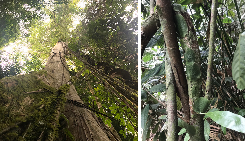 数十メートルにもなるフタバガキ科の木と、光を求めて木を登るツル性植物。温度、光、水が揃った熱帯は多様な植物の楽園です。