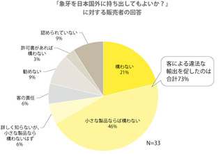 さらに、覆面でインタビューを行った中で、実に73%の販売者が「象牙製品を海外に持ち出すことは問題」ないと返答。
