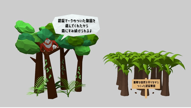 折り紙に続いて、様々な製品に付いている認証マーク(RSPOもしくはFSC®マーク)をARカメラで読み込むと、動物がすむ熱帯林と製品を作るために適切に管理された森が映し出され、認証マークを選ぶ大切さを教えてくれます。また、キャンペーン特設サイトからは、自由研究シートも無料でダウンロードできます。