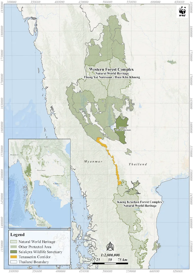 場所は、タイとミャンマーの国境地帯にある、「ダナ・テナセリム・ランドスケープ(DTL)」と呼ばれるエリアで、トラやアジアゾウの保全など、WWFが集中的に保全活動を行なっている場所でもあります。