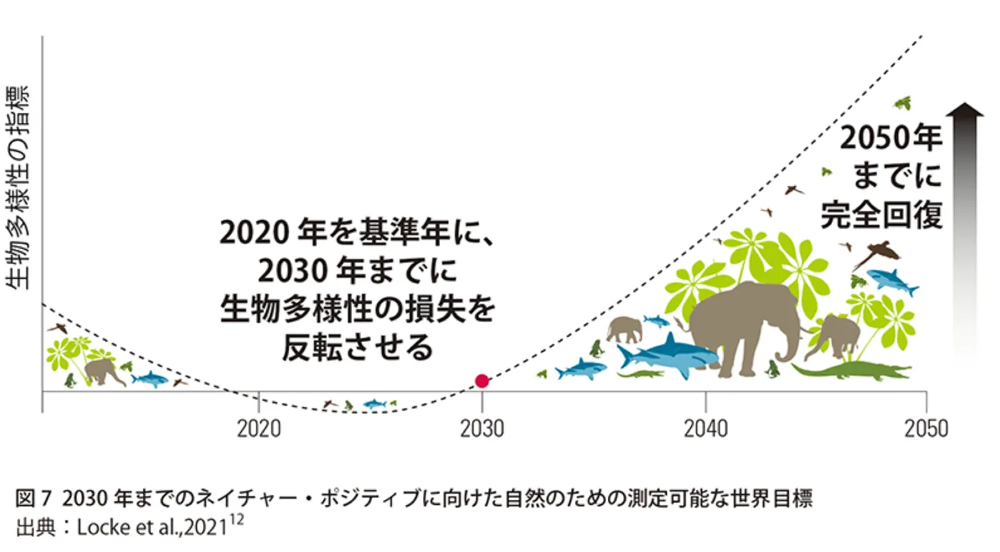 2030年までに「ネイチャーポジティブ」実現を目指す国際目標、これを日本国内で実施するための国家戦略について、中間評価をまとめた文書です。