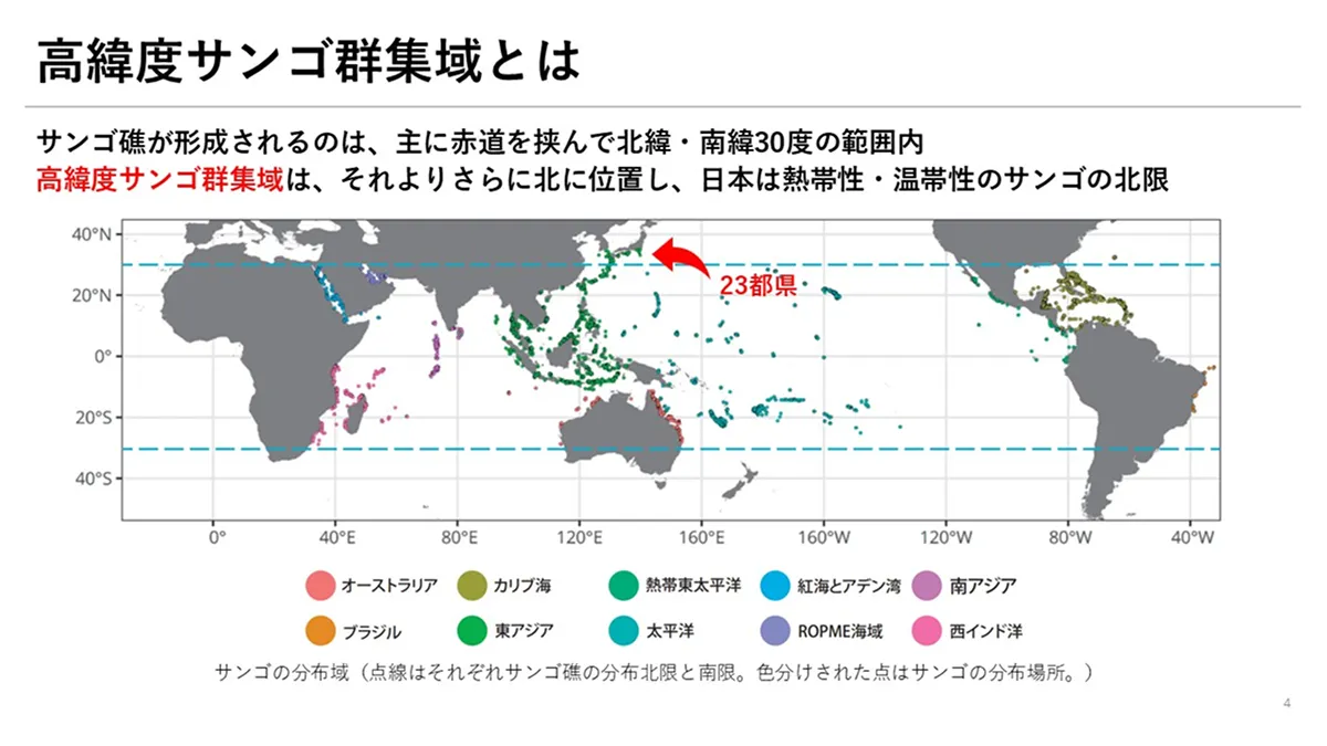 - 23都県に点在する高緯度サンゴ群集への理解を広げ、保全活動を活発化することは、サンゴの生息地保全に加え、地域の海洋資源を未来へつなぐための鍵。