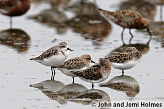 日本では、三番瀬、矢作川河口、大阪北港南、吉野川下流域、大授搦で数羽~十数羽が2014年秋の調査で確認されています。いずれも中継地の国際基準(推定個体数の0.25%)を満たす120羽以上は飛来していません。