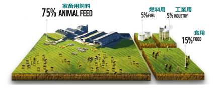 実は世界的に見ると、全生産量の75%が人ではなく、豚や鶏、牛や養殖魚などの餌として活用されています。