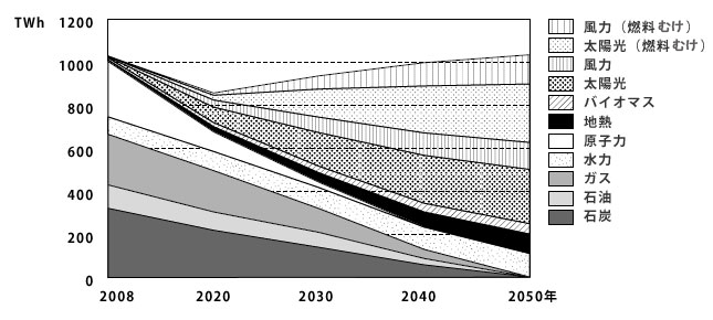 | 電力構成(TWh) | 2008 | 2020 | 2030 | 2040 | 2050 |