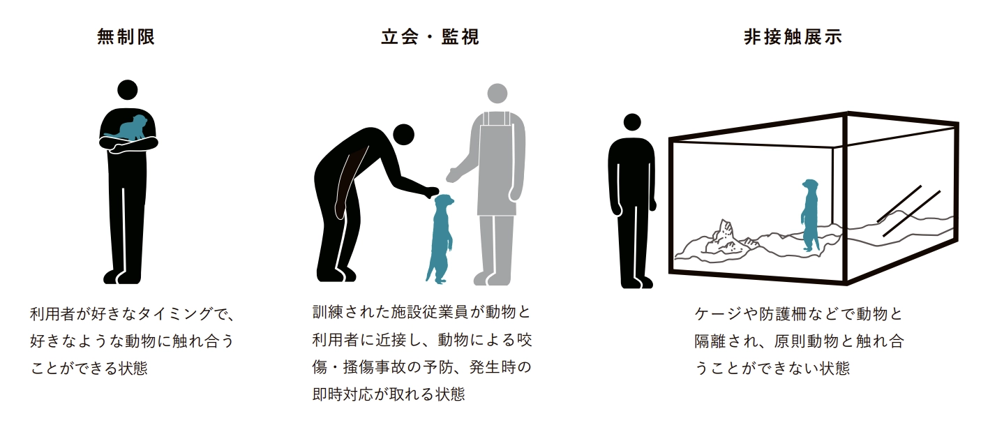 まず、動物の種類や性質に合わせて、人、動物双方にとって安全な接触方法を利用者に説明すること、そして、たとえ適切な方法で触ったとしても、怪我のリスクをゼロにすることはできないという事実を利用者に伝えることが必須です。