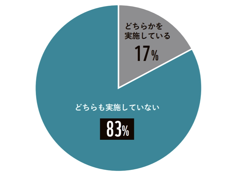 ハイリスク危険動物群を展示する23施設のうち、常時立会・監視または非接触展示のどちらかを行なっている施設は4施設(17%)、いずれも行なっていない施設は19施設(83%)でした※5(図4)。
