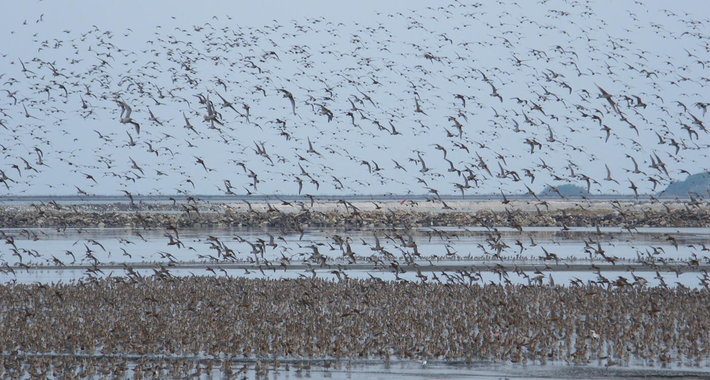 中国と朝鮮半島に囲まれた「黄海」の広大な干潟は、さまざまな渡り鳥にとって重要な飛来地となっています。特に、河北省唐山市の南堡(ナンプ)干潟には、毎年、春になると10万羽近くの水鳥が飛来します。WWFは、この地が公立の「湿地公園」として保全されることをめざし、中国政府への働きかけを継続しています。