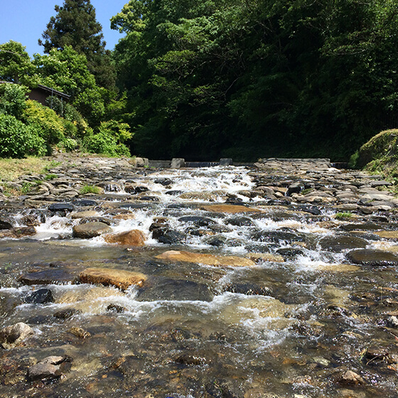 九州大学との共同研究では、河床をコンクリートで固めるよりも、伝統的な石積みの工法を用いたほうが、河川の流速を抑える効果があり、防災・減災につながること、そして、自然の川に近いレベルで生きものの生息も可能であることを明らかにしました。