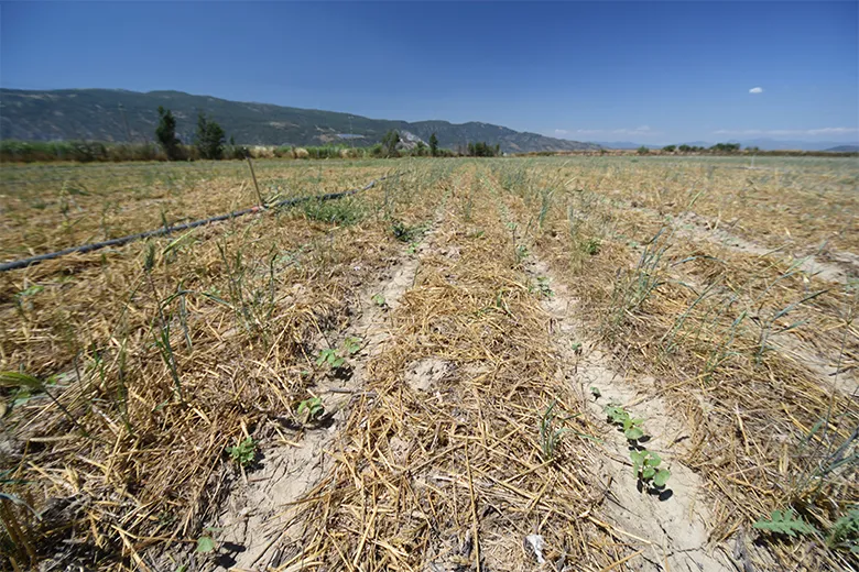 WWFトルコの取り組み事例。綿花の作付け前に地面を覆う植物を栽培し、刈り取り後も敷きワラにして土壌を保護するとともに、水使用量の低減を図っている