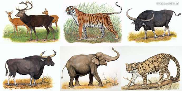 インドシナ半島を流れる大河、メコン川の流域に広がる森。 そこでは、トラ、ヒョウ、ドール、アジアゾウ、テナガザル、バンテン、センザンコウなど、絶滅のおそれがとても高い動物たちが命をつないでいます。