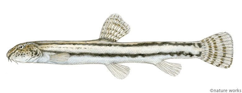 ナマズ目ギギ科ギバチ属 全長15~30cm 絶滅危惧Ⅱ類(VU)