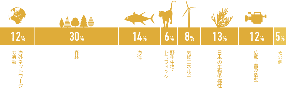 WWFは、政府機関等からの公的な補助金に頼らず、皆さまからの会費、寄付、募金により支えられています。WWFジャパンへのご支援は、WWFジャパンが実勢している国内外の環境保全のほか、一部はWWFインターナショナルを通して広く国際的な活動にも使わせていただきます。