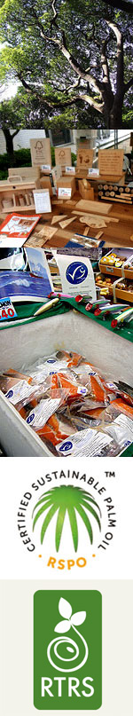 製品に利用されているパーム油の中には、熱帯の貴重な自然や、森に依存して生活する人々の暮らしを犠牲にして生産されたものが、少なからず含まれています。この問題に取り組むため、「持続可能なパーム油」の生産と利用を促進する非営利組織、「持続可能なパーム油のための円卓会議」(RSPO)の設立を支援し、現在もその普及に取り組んでいます。