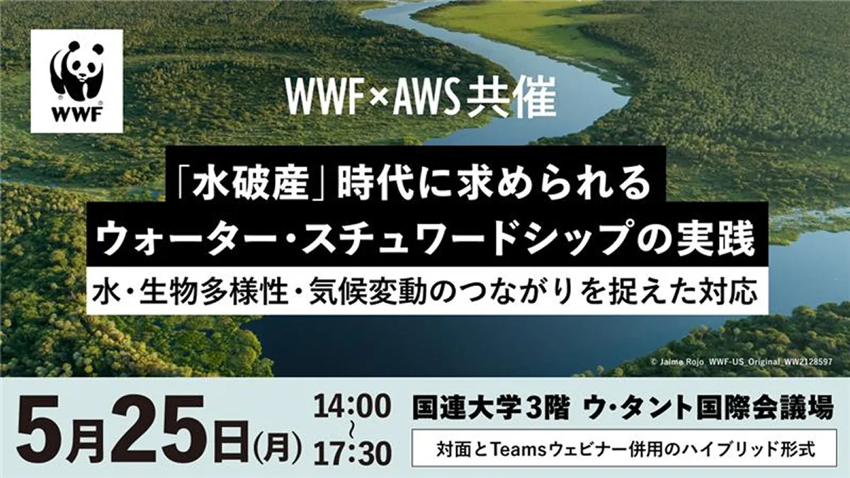 WWFジャパンは、Alliance for Water Stewardship(AWS)との共催により、2026年5月25日(月)に国連大学(東京都渋谷区)で、企業向けセミナー 「水破産」時代に求められるウォーター・スチュワードシップの実践― 水・生物多様性・気候変動のつながりを捉えた対応 をハイブリッド形式で開催します。