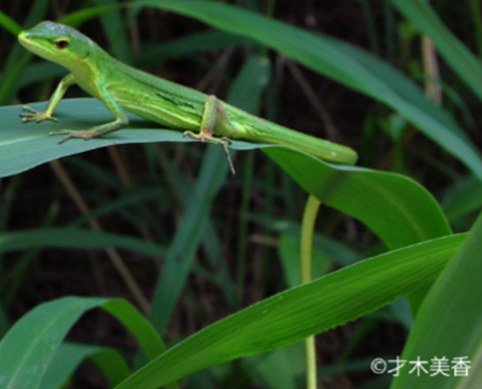 ミヤコカナヘビは緑色の体色、細長い体形、自切する長い尾が特徴のトカゲで、宮古諸島の固有種です。2010年代に入ってから個体数の著しい減少が指摘され、現在は宮古島市自然環境保全条例の保全種、沖縄県天然記念物、種の保存法に基づく国内希少野生動植物種に指定され、環境省版レッドデータブックで絶滅危惧IA類、IUCNのレッドリストでは危機種(Endangered, EN)に指定されています。