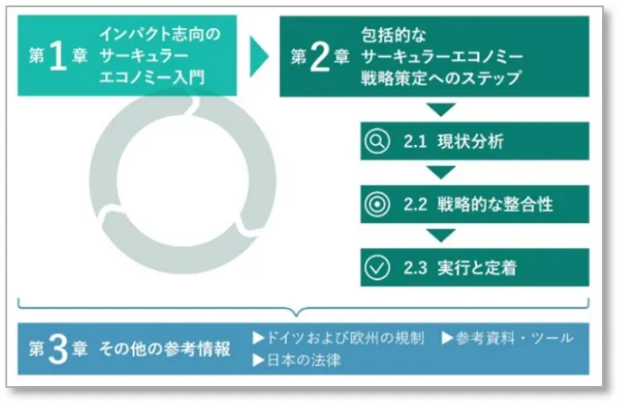 - 企業が環境、社会、経済へのインパクトを重視したサーキュラーエコノミー戦略を段階的に策定・実行するための実践的な枠組みを提示。