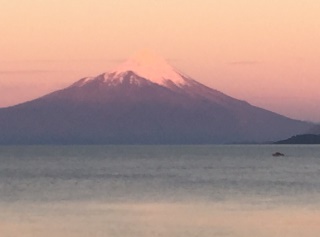 宿泊した町から見えた山。「チリ富士」とも呼ばれるオソルノ山です。