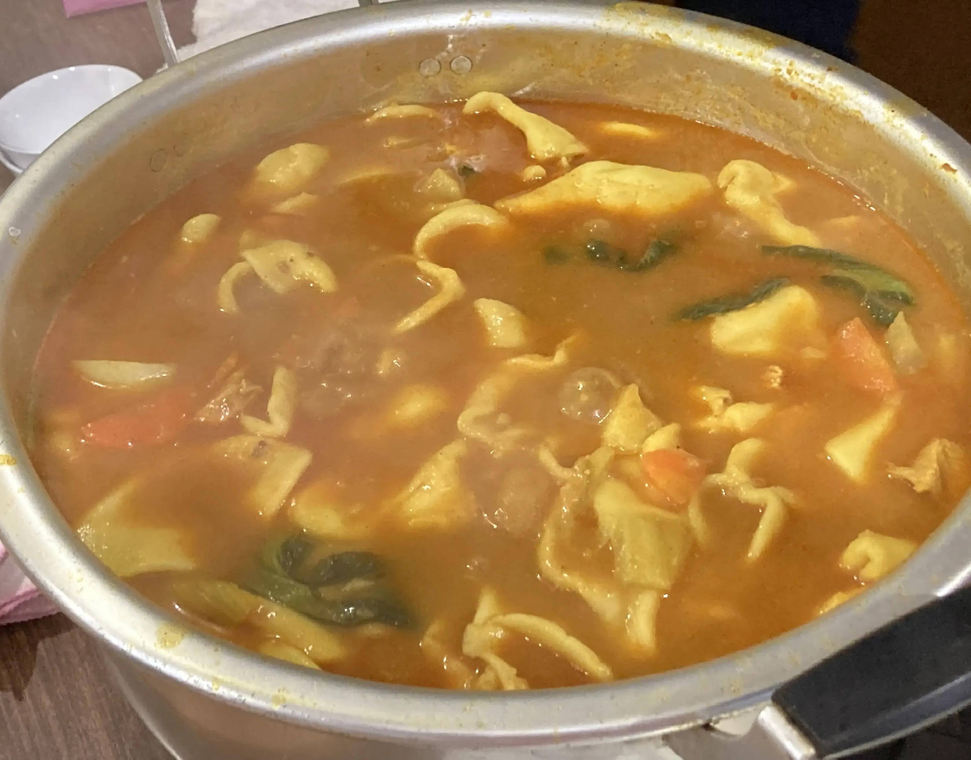 野菜や肉を入れたカレースープの中に、小麦粉を水で練ったお団子が入っています。チュータギは客人向けの料理だそうです。