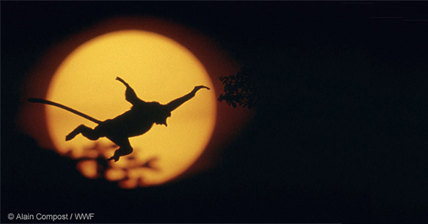 慌てて窓の外を見ると、そこには野生のミュラーテナガザルが!