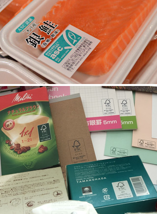 FSC®は適切に管理、伐採され、生産された木材や紙の製品に付される森を守るラベル。商品のパッケージやティッシュペーパー、文具、また各種印刷物でも利用が進んでいます。