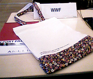 ですが、WWFやCAN、グリーンピースなどのNGOや、OPECやIAEAなどの機関もオブザーバーとして会議への参加が認められています。なので、ちゃんとWWFの席もあります。