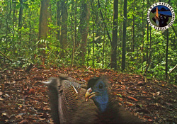 前を動物が通ると、赤外線センサーが反応してシャッターが下りる仕組みで、一箇所につき数百枚の写真データが集まるのですが、見ているとやたらにこの鳥が出てくる。