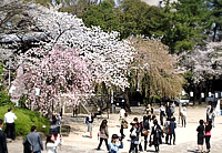 お昼休みでしたが、たくさんの人たちがお花見に来ていました。