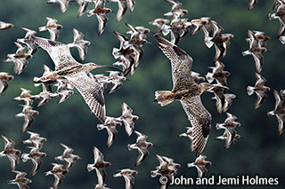 有明海や黄海の干潟を訪れる、シギ・チドリなどの渡り鳥たち。その数は数十万羽にのぼります。