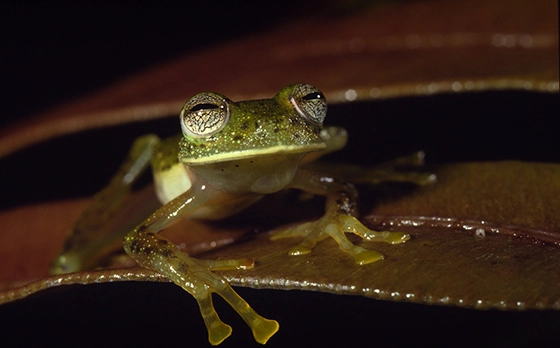 中南米に生息するグラスフロッグ。近年ペット人気が高まっており、取引の影響が懸念されます。