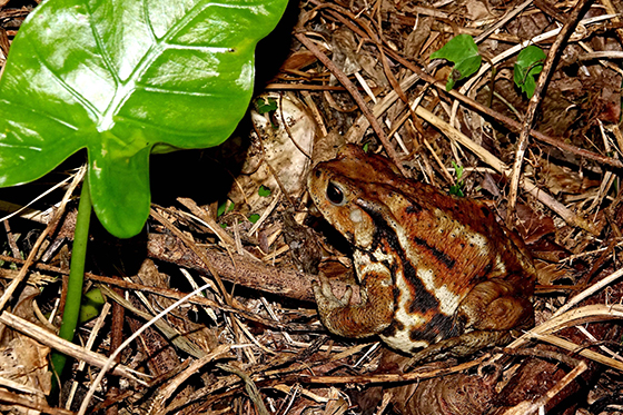 一般的にイメージされるジャンプが得意なカエルとは違い、地面に潜ったり、落ち葉に潜んで過ごします。